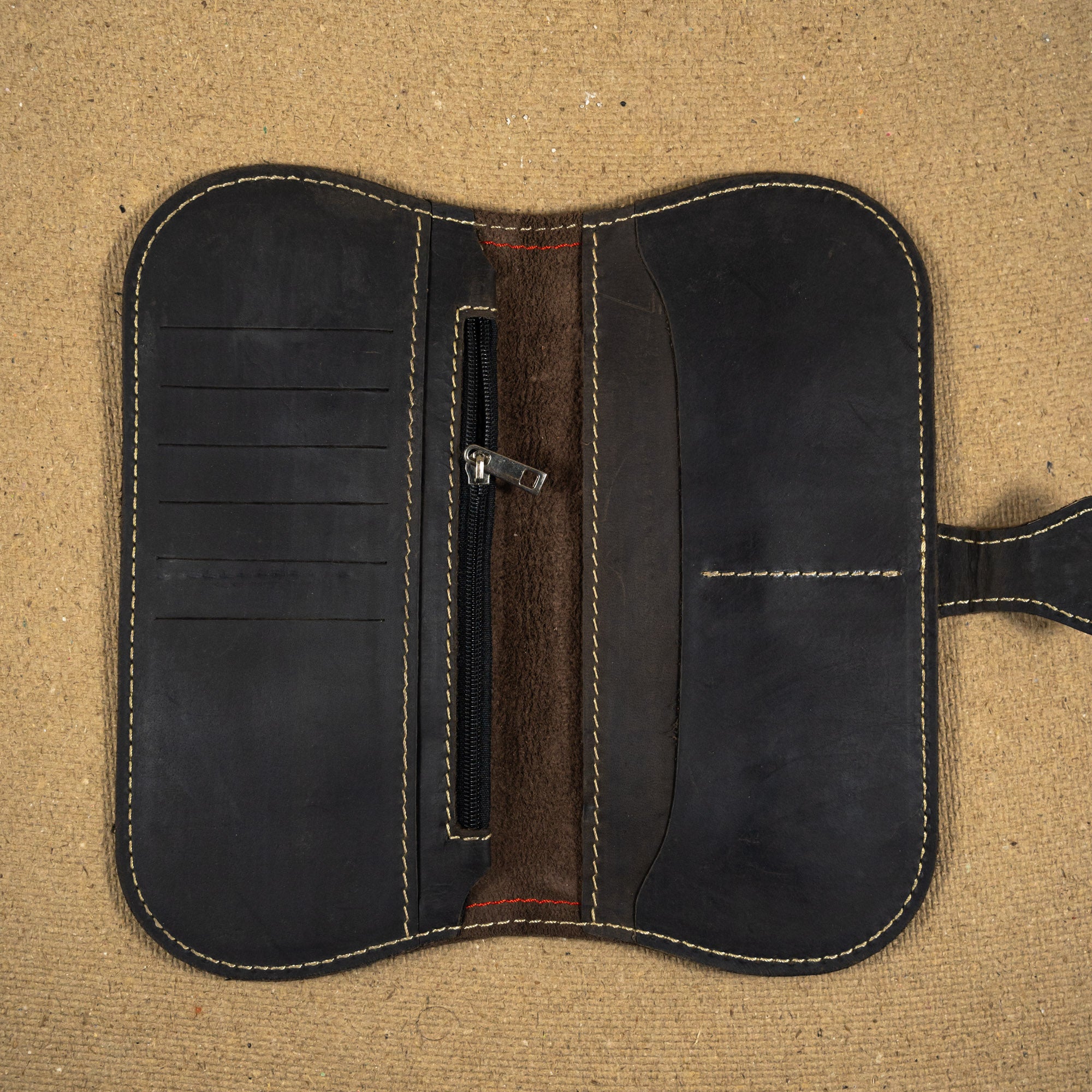8-10 cards, flat cash, smartphone, zipper pocket.