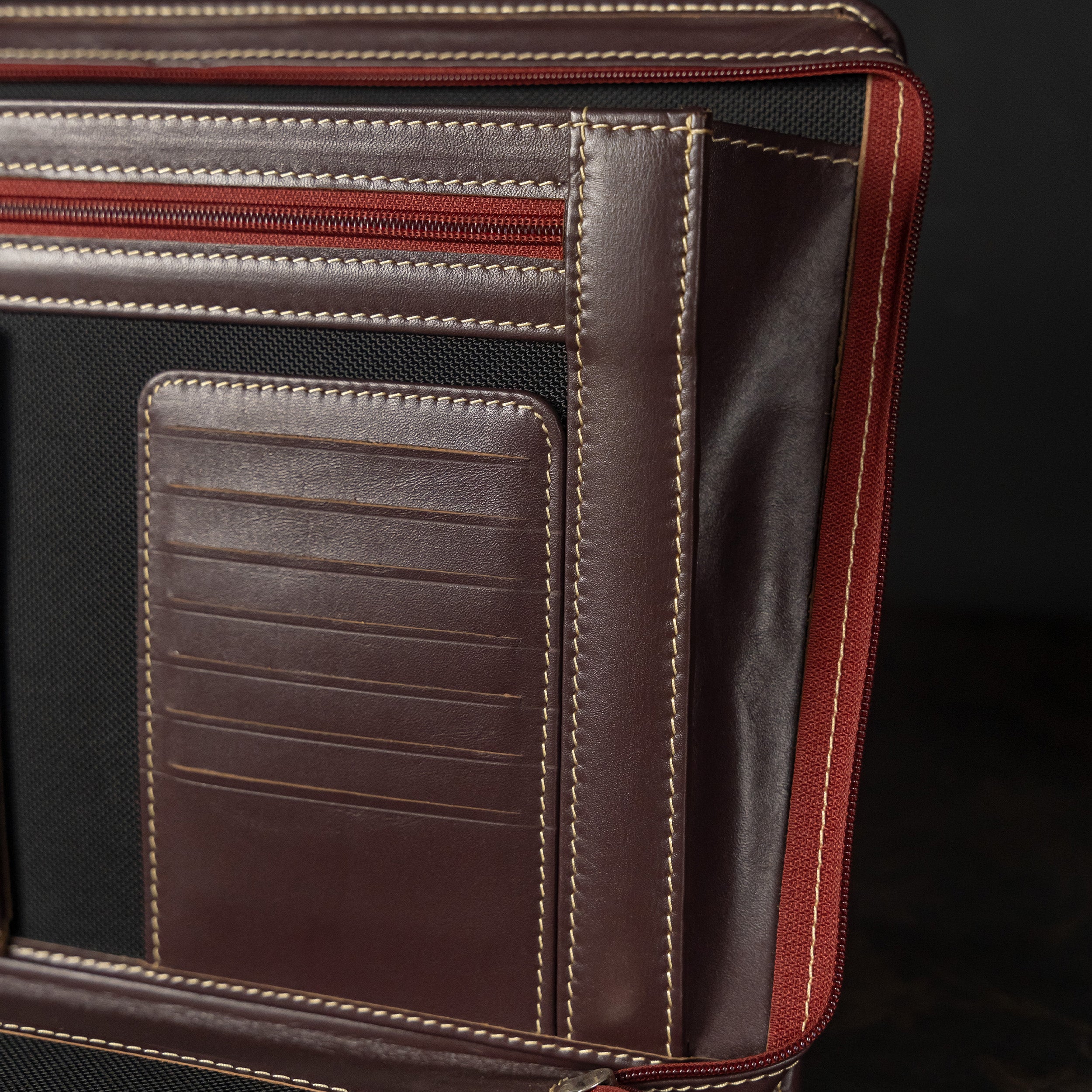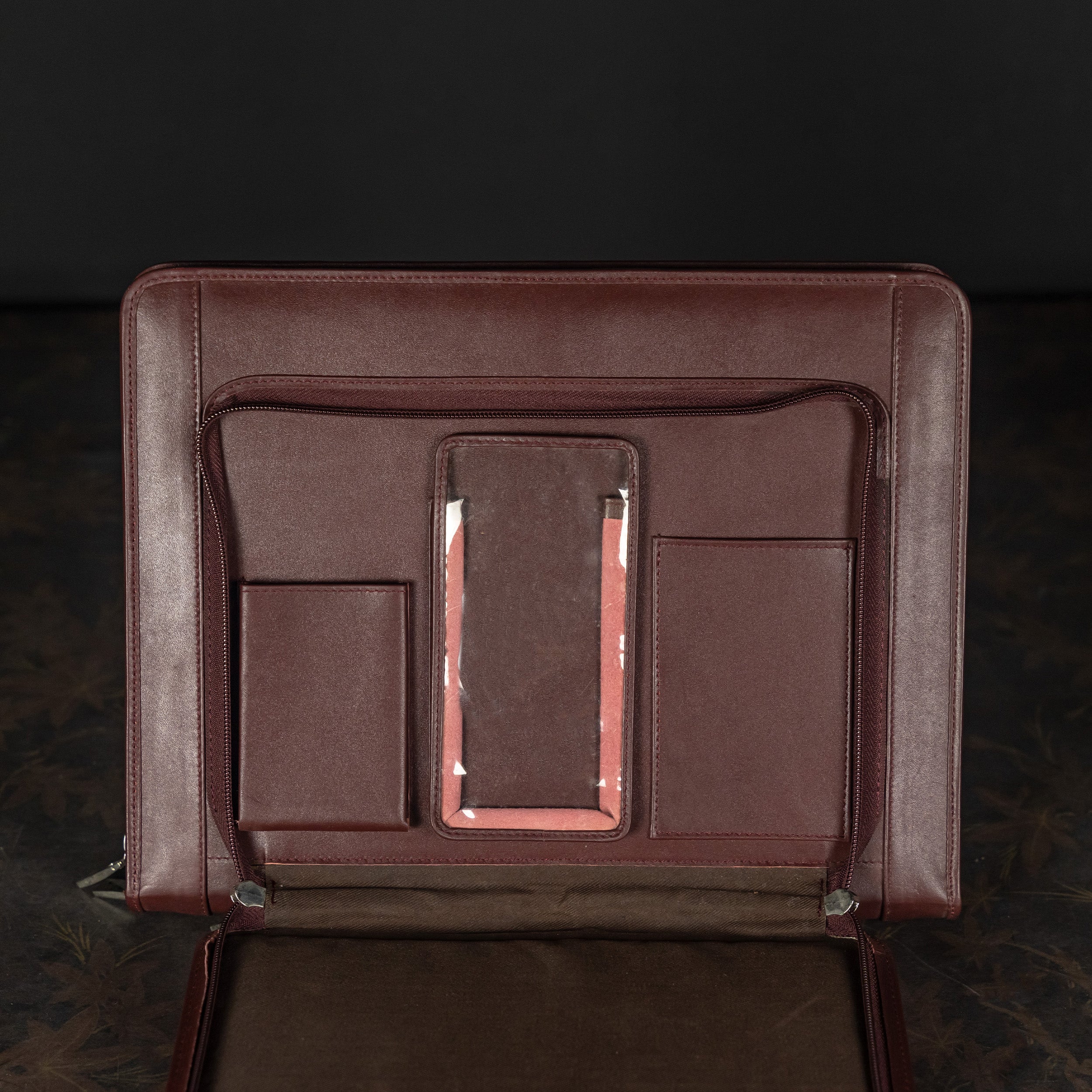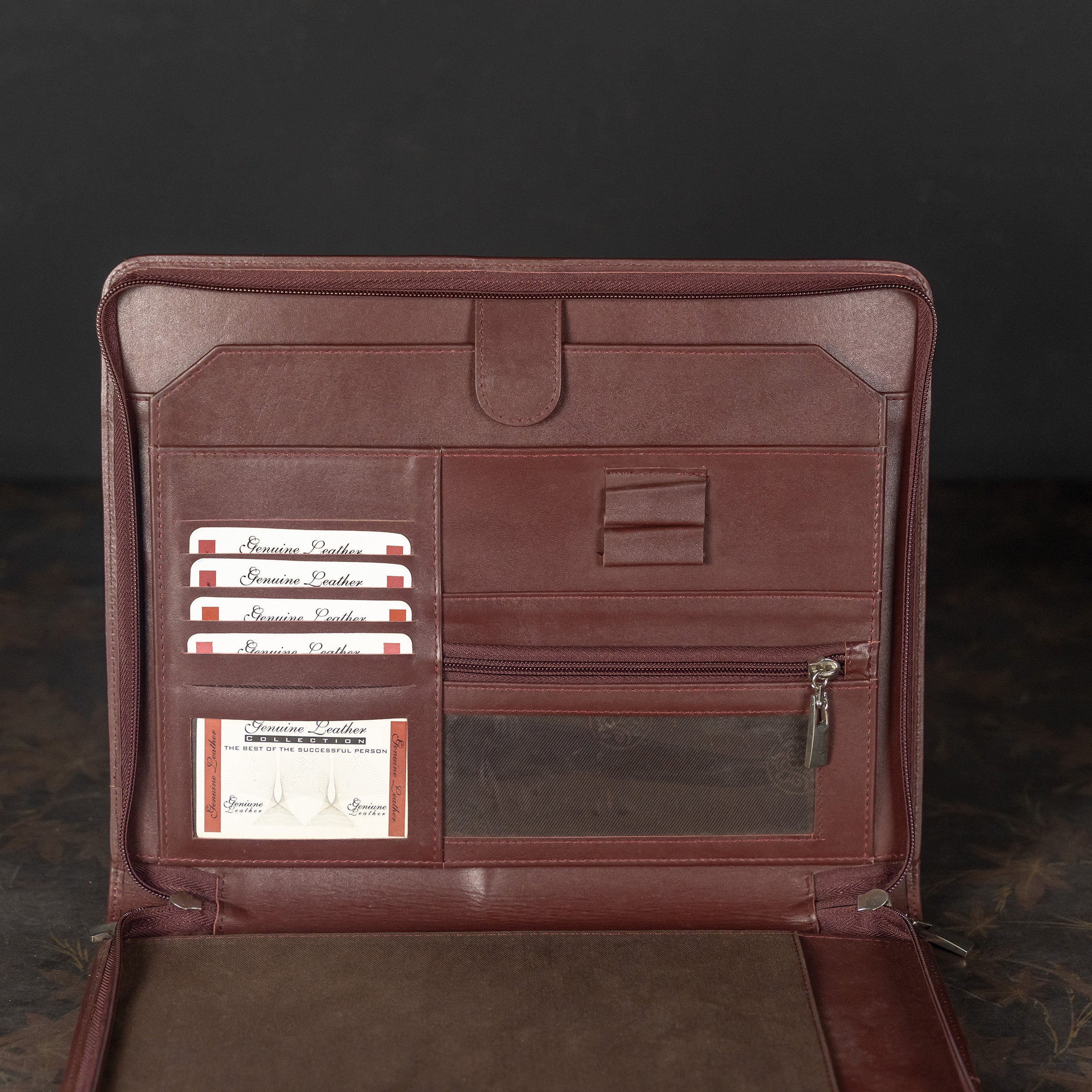 Executive Genuine Leather Zippered Portfolio & Document Organizer