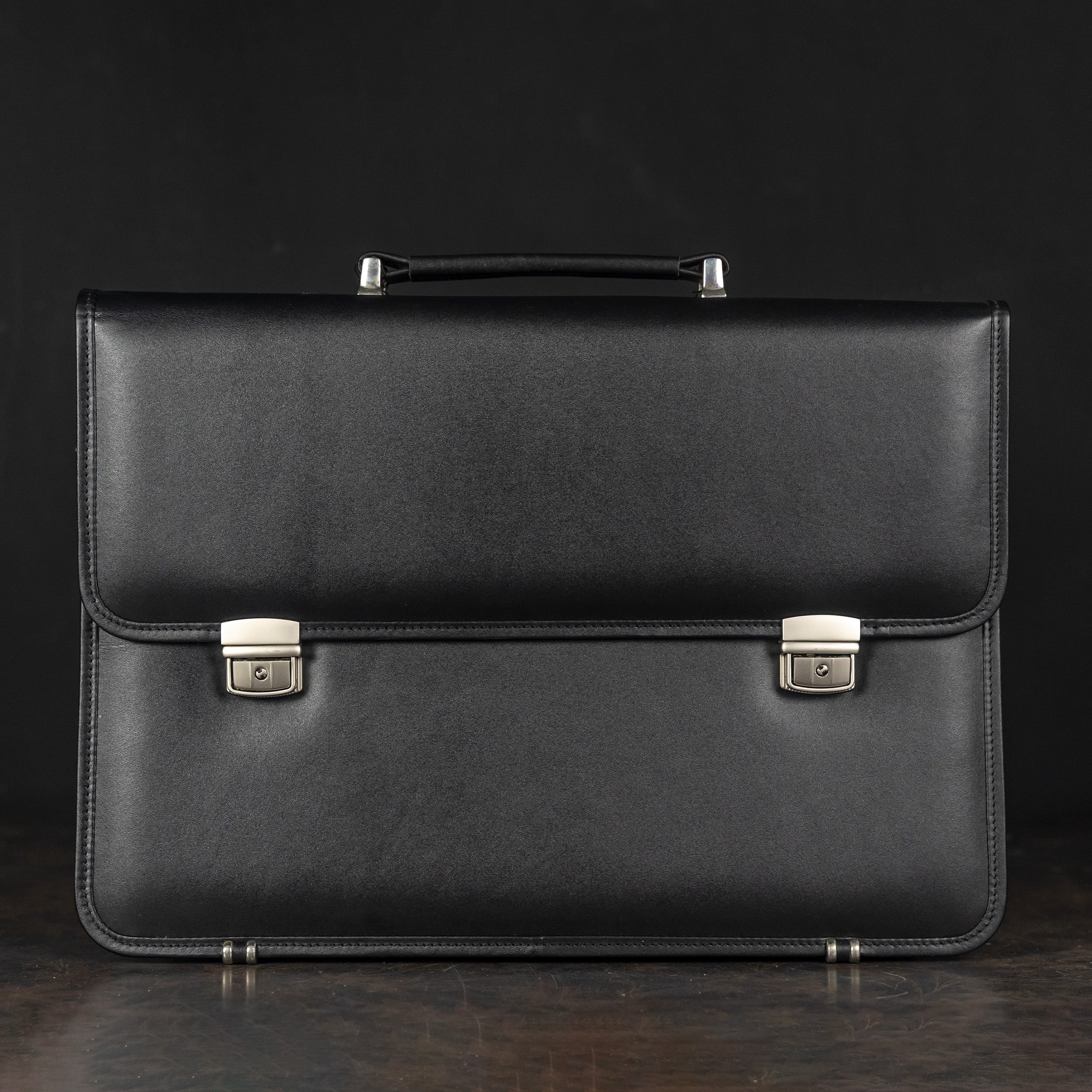 The Executive: Classic Black Leather Expandable Briefcase